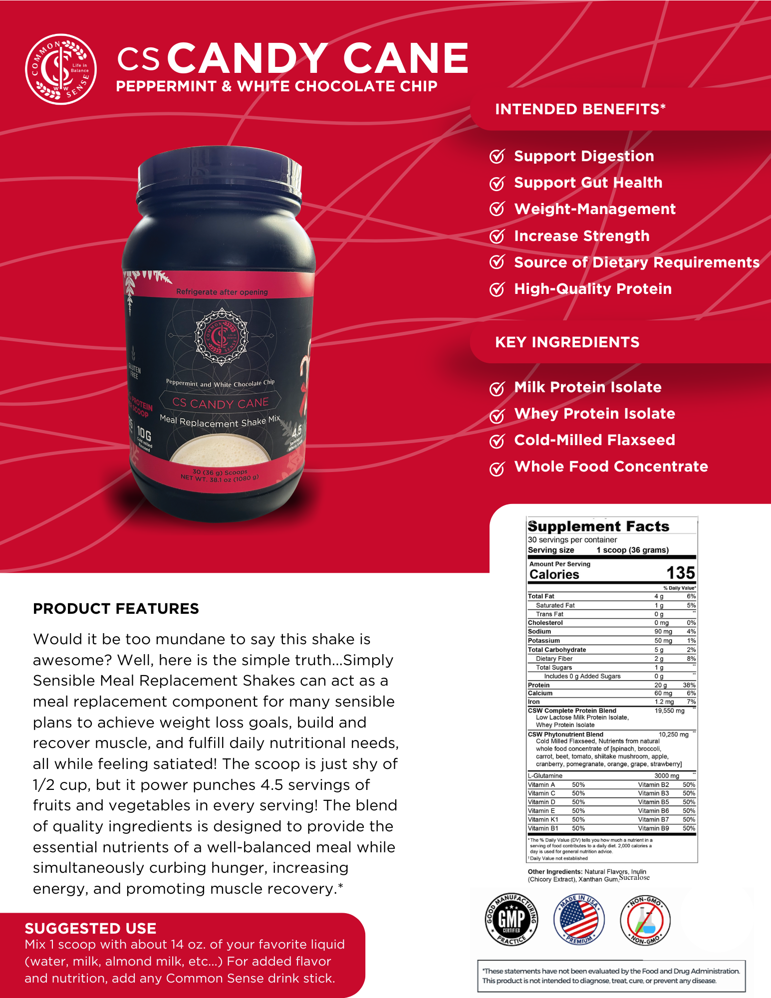 Mix 1 scoop with about 14 oz of your favorite liquid (water, milk, almond milk etc...). For added flavor and nutrition, add any Common Sense drink stick.